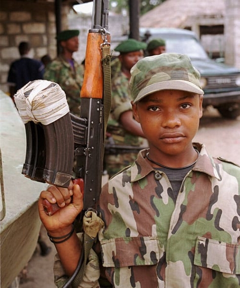 ”Med et våpen trenger du bare å slå av sikringen, ta ladegrep, bruke denne fingeren og så er de døde. Du trenger ikke en stor kropp, du trenger ikke kraft, du trenger bare våpenet.” Tidligere barnesoldat China Keitetsi fra Uganda, i et intervju med BBC Online i 2004.