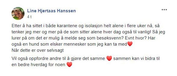 Under ser man et Facebook innlegg av Line Hjertaas Hanssen, en av de som ville hjelpe.