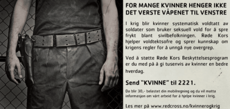 Når du hører ordet ”våpen” ser du sannsynligvis for deg gevær eller tanks eller bomber. Men voldtekt brukes også som våpen i krig. Soldater voldtar bevisst sivile for å krenke, dominere, skape frykt og demoralisere lokalbefolkningen. Det er et effektivt, lett tilgjengelig og billig våpen – som særlig brukes som terrorvåpen på sivile kvinner og barn.